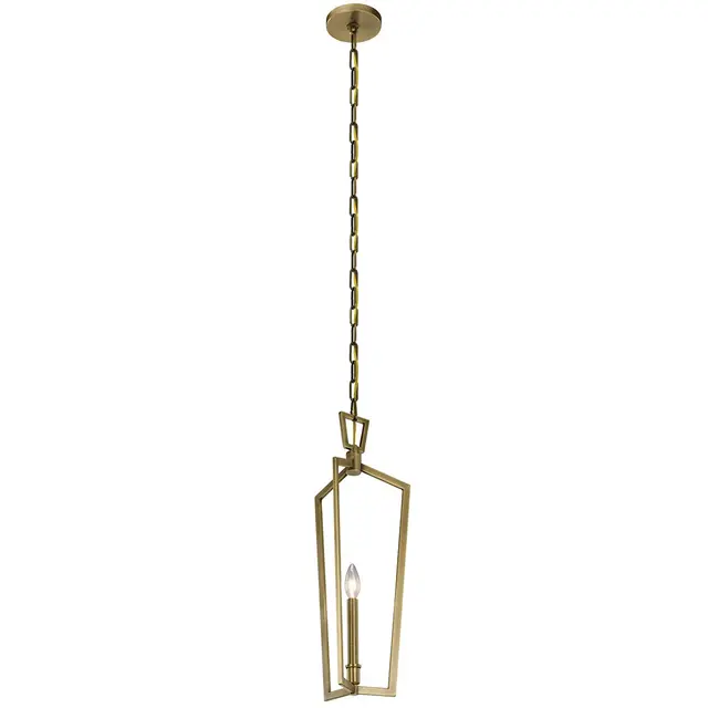 The open cage style of the Abbotswell™ 1-light mini pendant makes maximum impact with minimal lines. Intersecting pentagons in a rich Natural Brass finish create a look that works in a variety of decors: updated traditional, transitional or modern farmhouse.