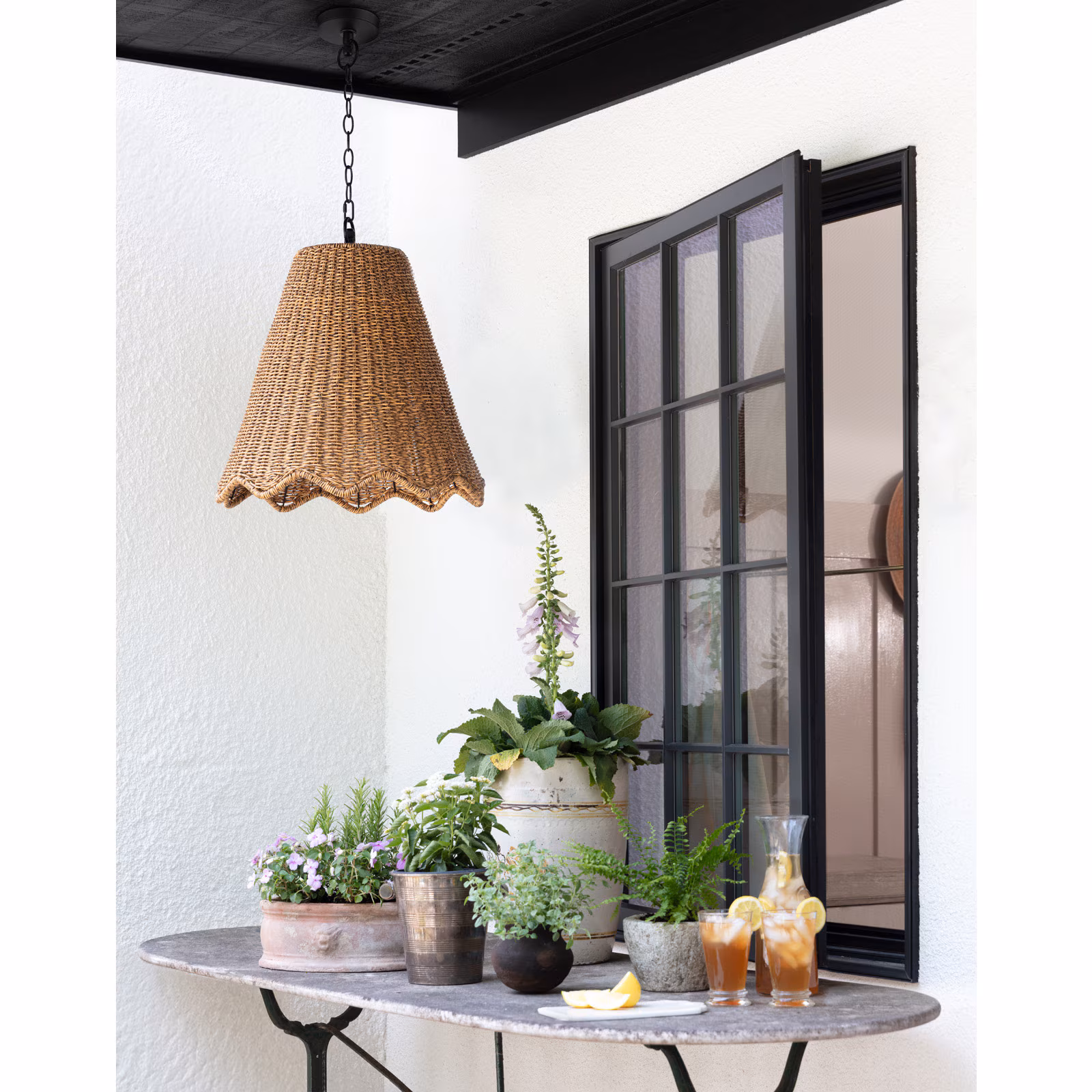 When you think of summertime you envision warmth, having fun in the sun, and waiting for the golden hour. The Summer Pendant brings all of the best parts of the season to the exterior of your home. Rattan-like material woven into a wavelike pattern allows warm light to peek through and add a pleasant glow to your outdoor oasis. This pendant really lives up to its name! Regina Andrew outdoor lighting pieces are constructed with the best quality materials to live amongst the elements while providing the signature, designer style that RAD customers know and love.